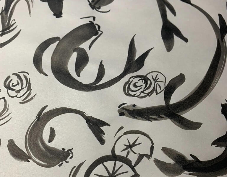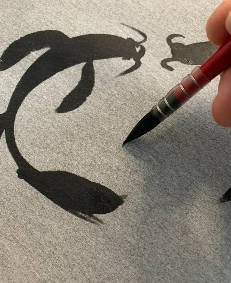 Découverte du geste de peinture sur tapis de pratique à l'eau. Cette expérience sans pression, favorise le calme et la respiration.